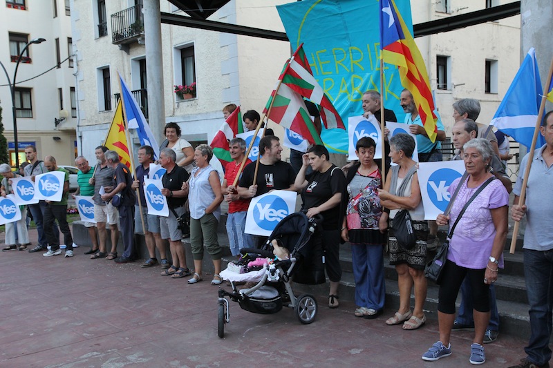 Eskoziako independentziari buruzko galdeketarekin bat eginez, EH Bilduk deituta elkarretaratzea egin zuten atzo, Areizaga-Kalebarren plazan.