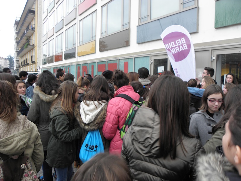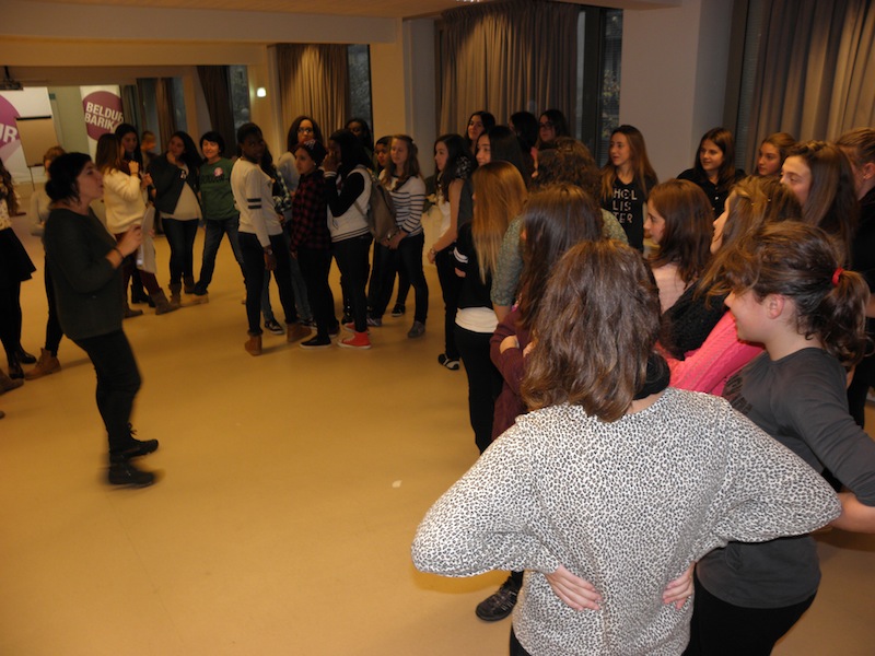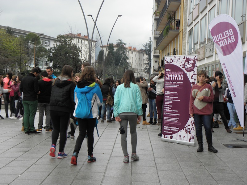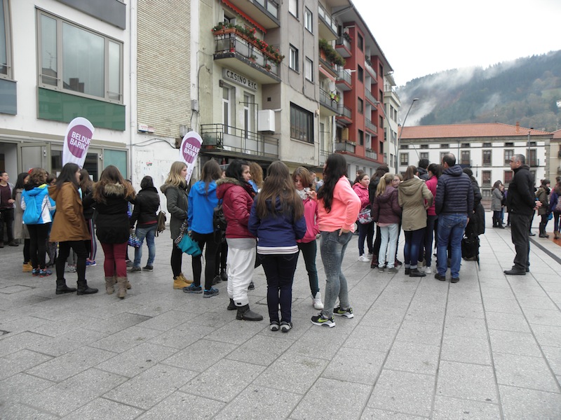 Bost autobus iritsi dira Zumarragara arratsaldeko lauak pasatxo. Berrehun gaztetxotik gora, oso gaztetxoak gehienak. Guztiak Beldur Barik Topaketan parte hartzeko iritsi dira Goierrira. Pasaia, Errenteria, Tolosa, Donostiatik iritsi dira batzuk, Gipuzkoatik. Gasteiztik eta Arabako beste txoko batzuetatik ere bai. Bizkaitarrik ere badago, Portugaletekoak, adibidez. Orain, Zumarragako Zelai Arizti kultur etxean daude. Tailer ezberdinetan banatu dira: hilekoari buruzkoa, autodefents feminista, desioaren gainekoa edo rap tailerra. 19:30ean amaiera emango diete tailerrei eta kalejiran joango dira Zumarragatik Urretxura. Urretxun, Labeaga aretoan, hain zuzen ere, 20:30ean emango dituzte aurtengo