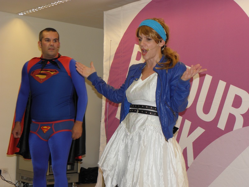 Superman agertzen da Clark Kenten gabardina jantzita. Bera ere nekatuta dago bere superheroi rolarekin. Antzerkia amaitzean ez da jada Superman,