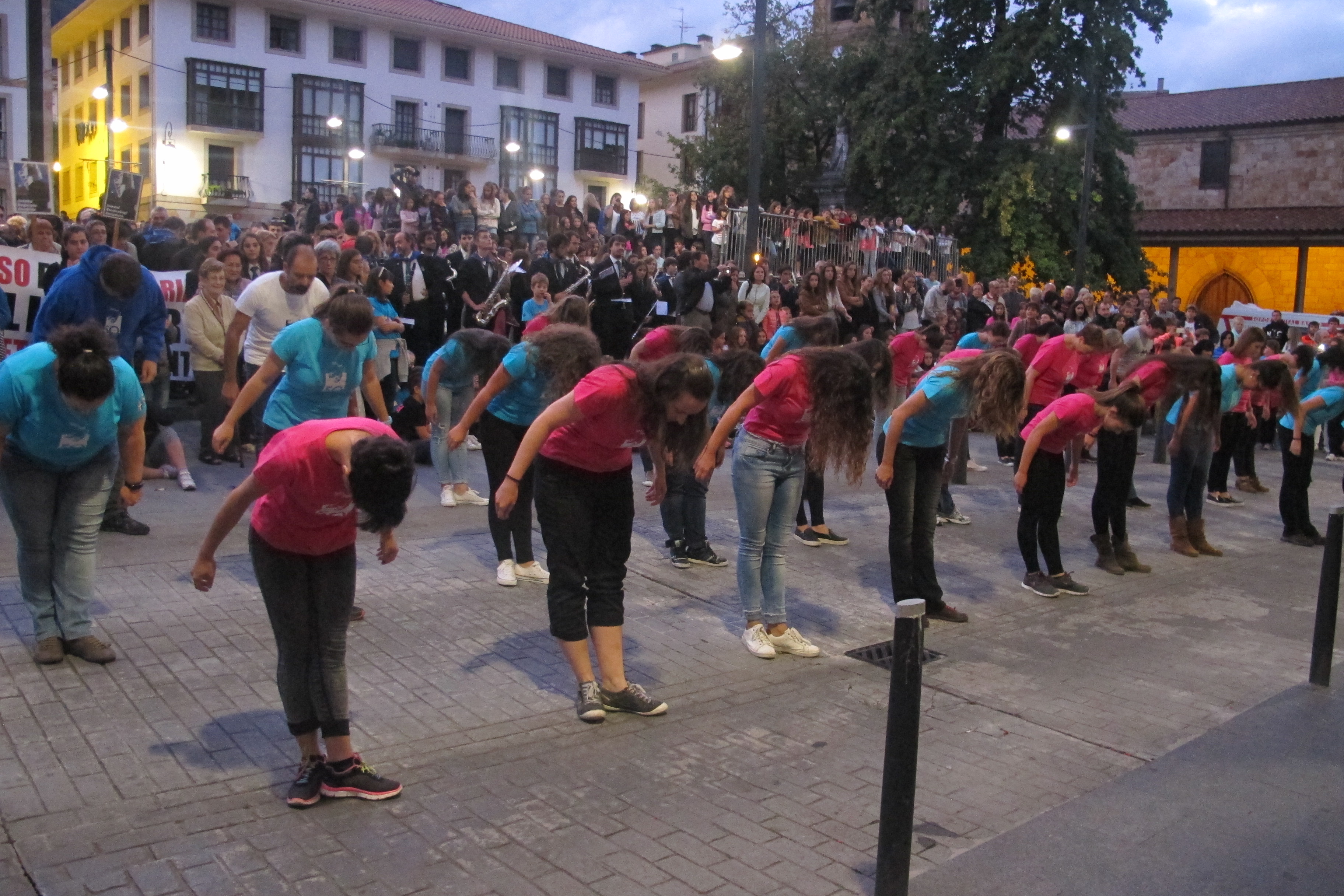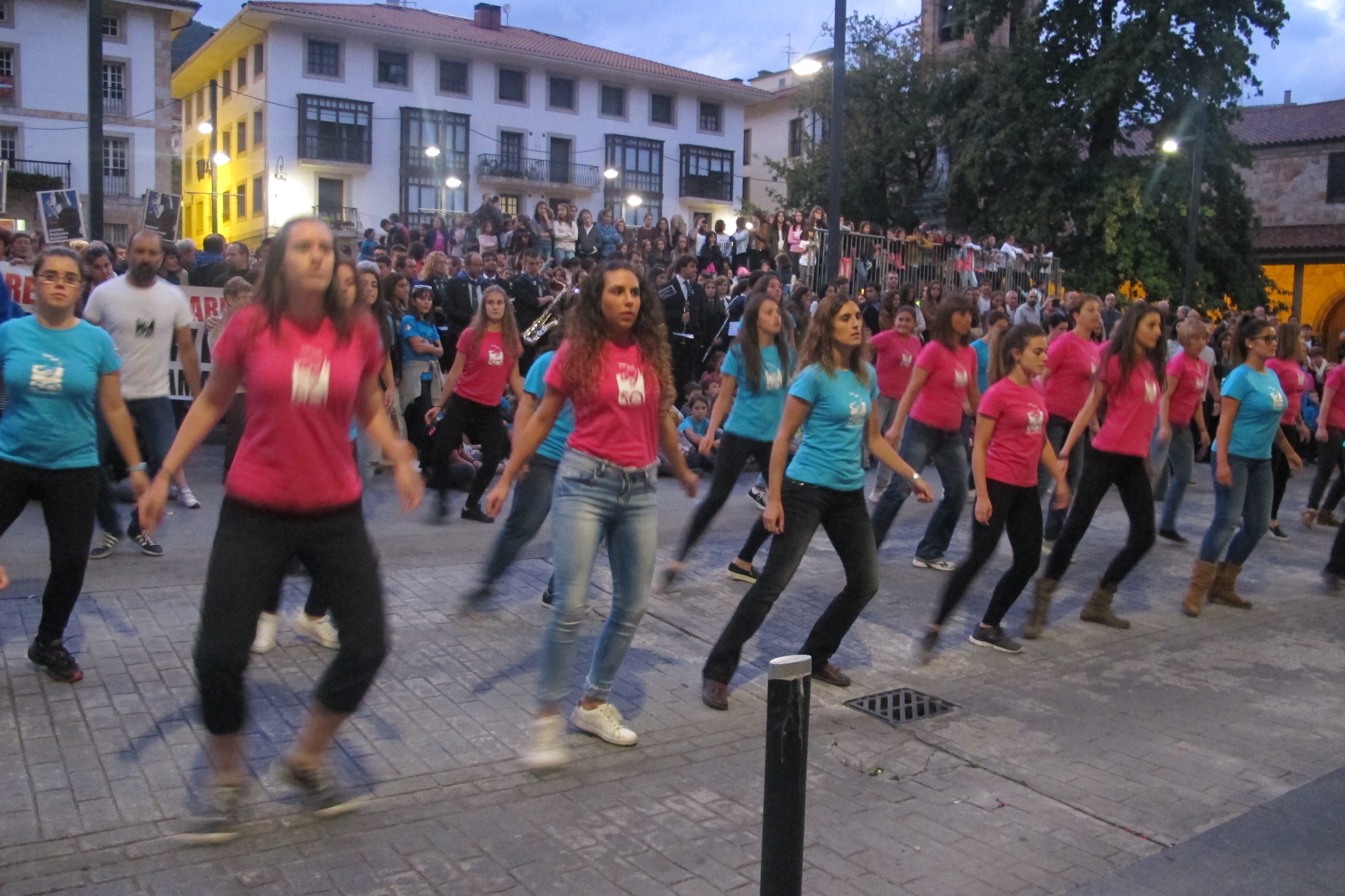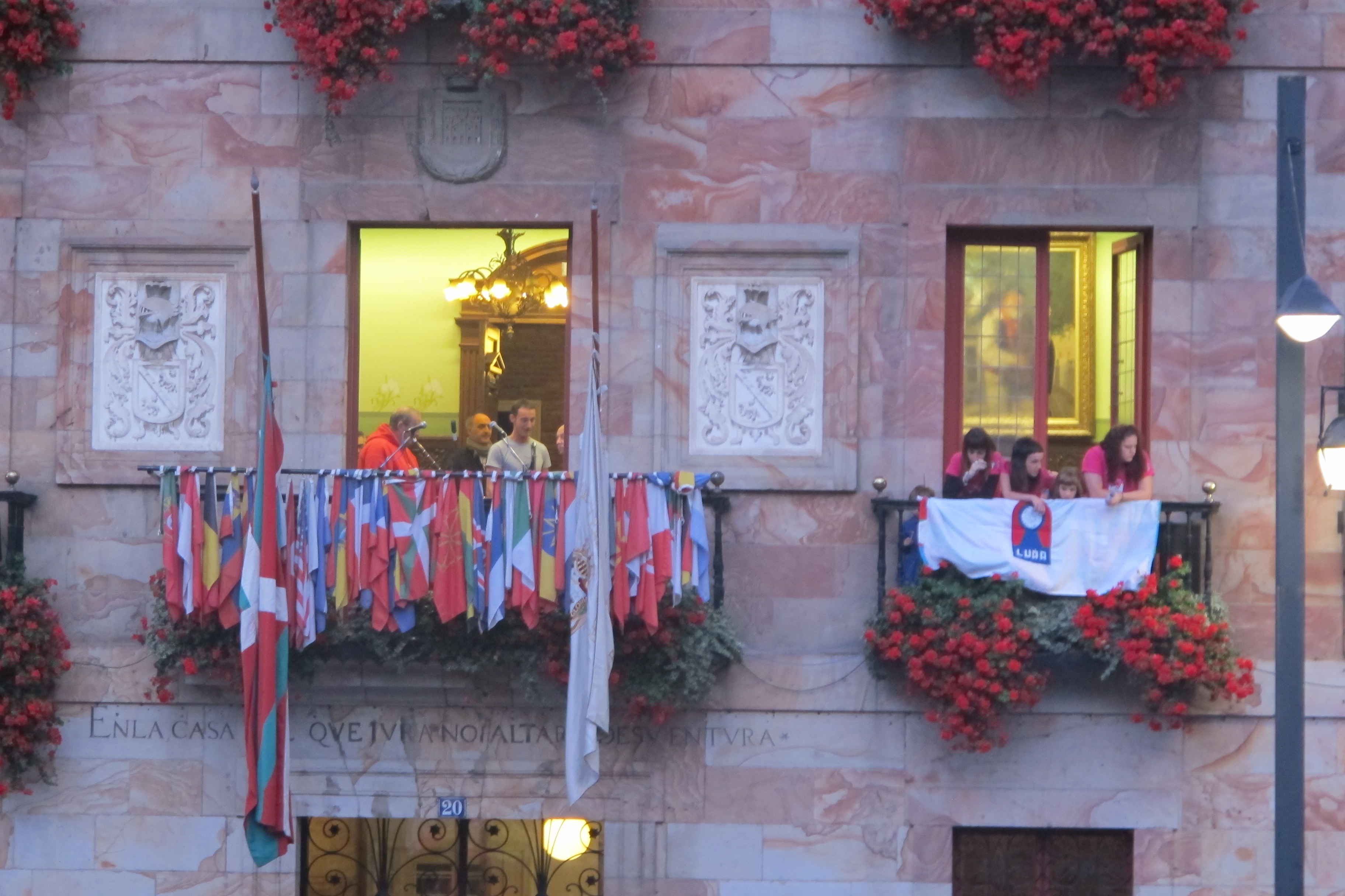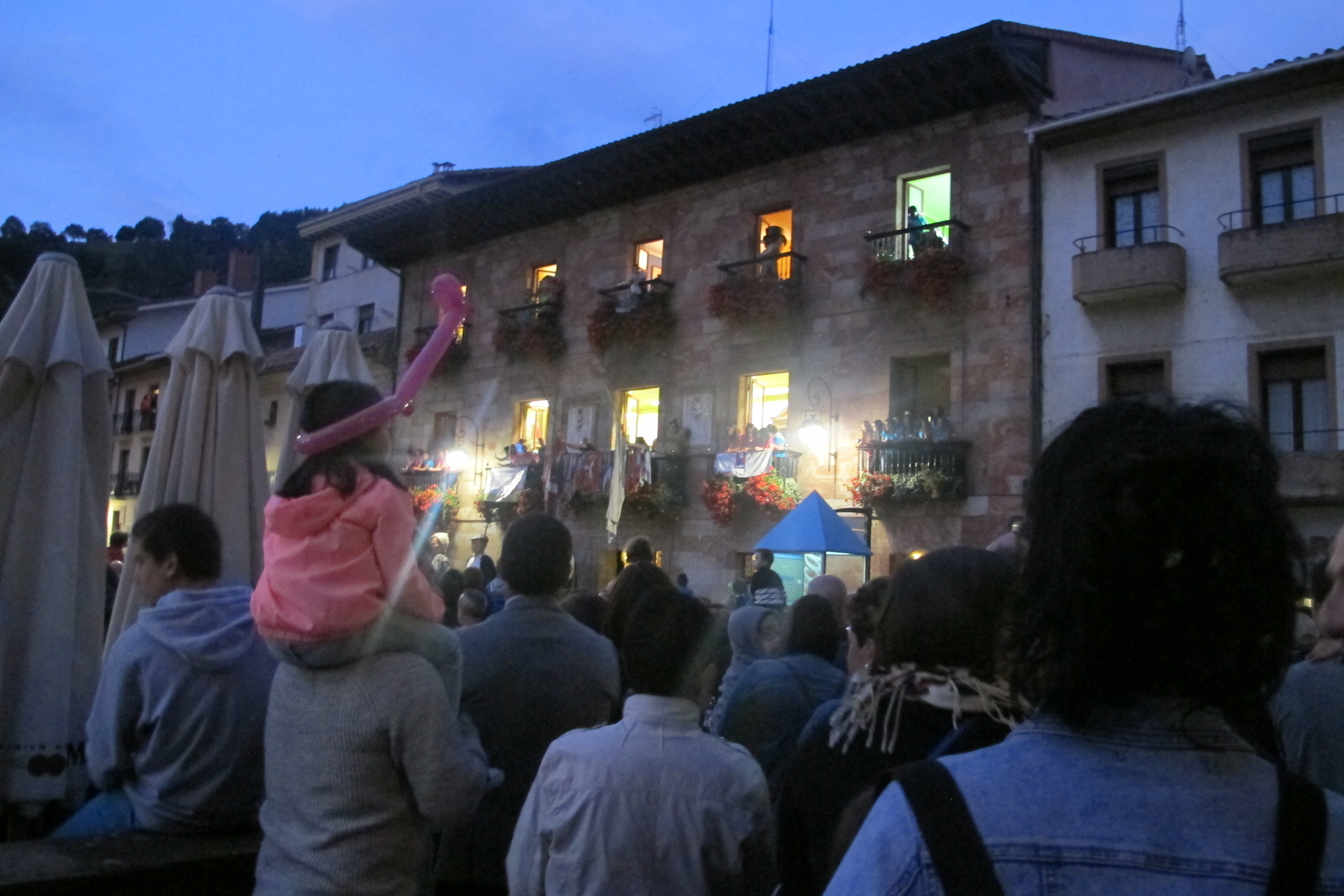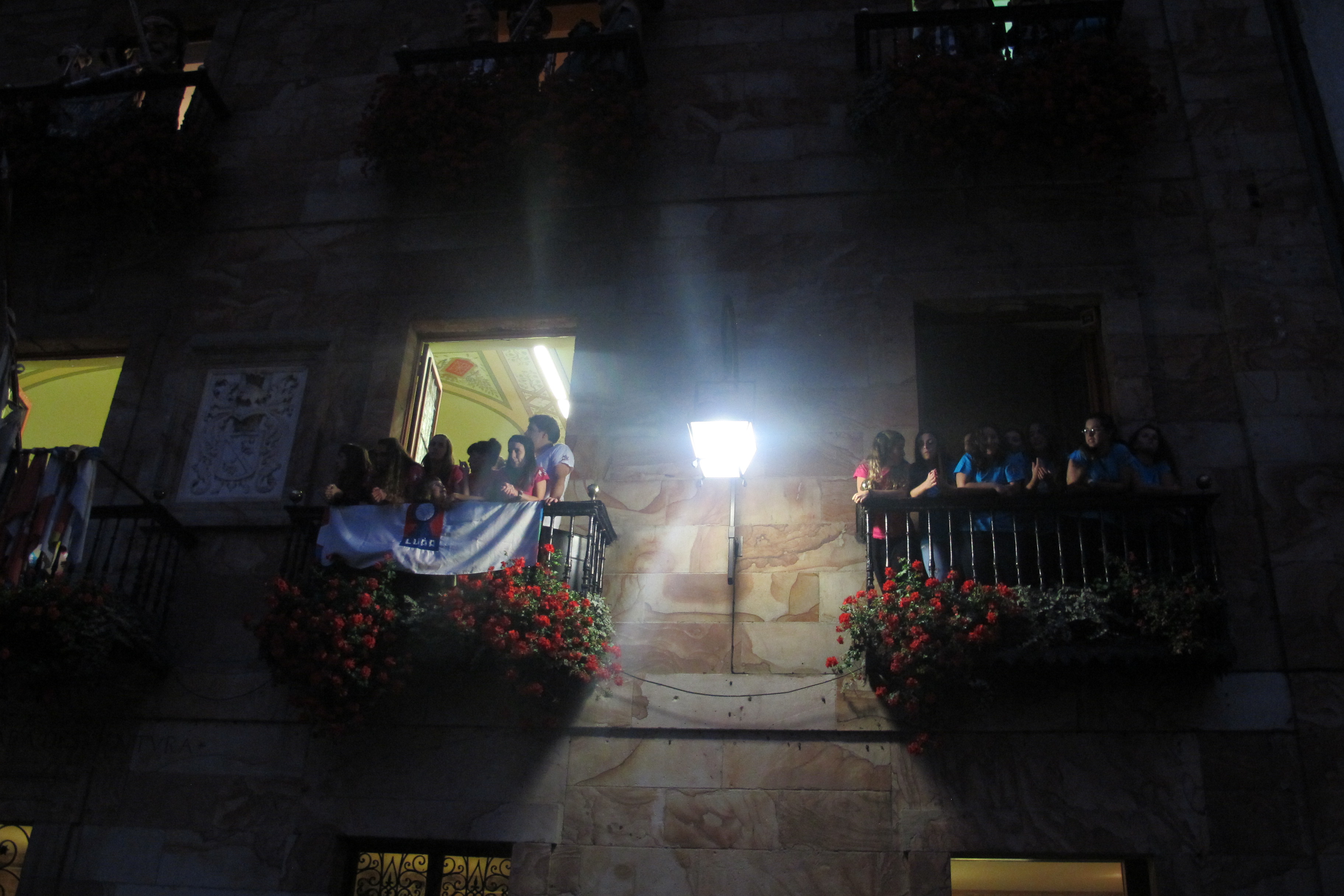 Plaza jendez bete da txupinazoan. / Maialen Igartua - Lurra dantza taldea balkoian