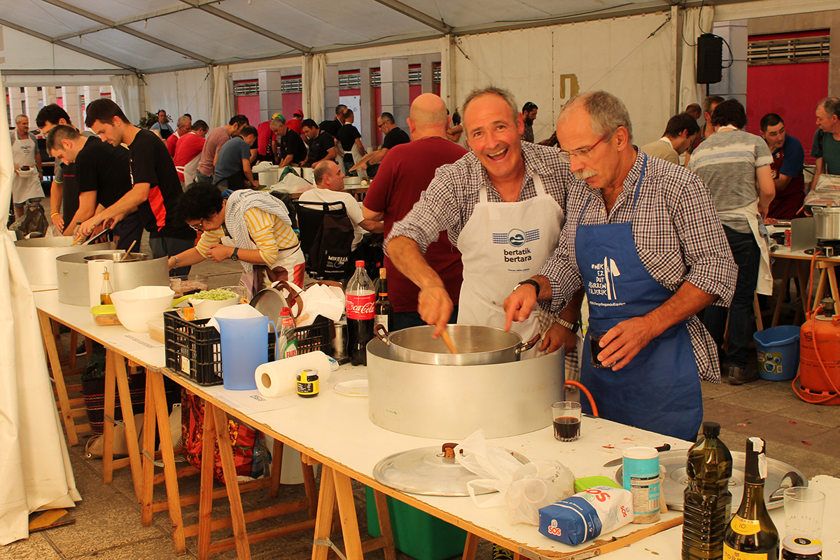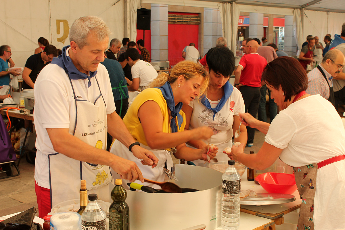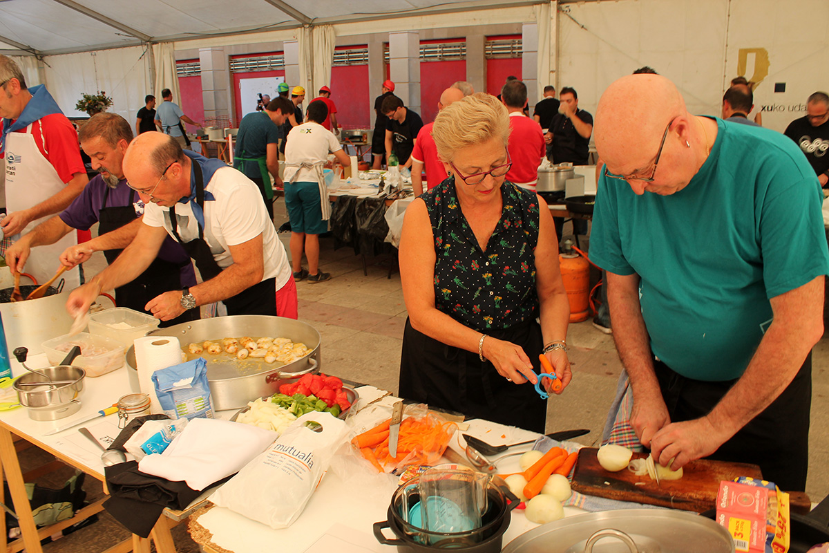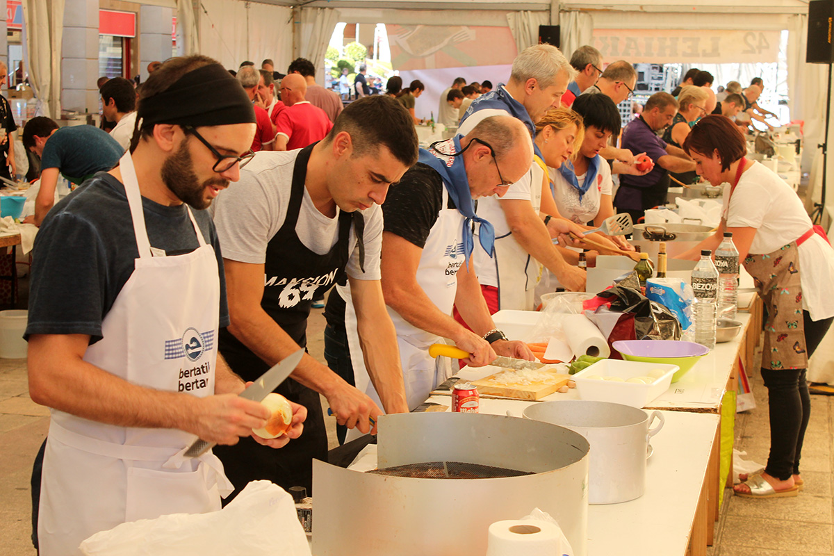 Santa Anastasia jaietan bete-betean sartu dira urretxuarrak. Gaurkoa, lehiaketen eguna dela esan liteke; xake lehiaketa egin dute arratsaldean, eta sukaldaritzakoa ari dira orain egiten. Gastronomia Lehiaketak 43. edizioa du aurten, eta 45 taldek eman dute izena. Denek ere, txipiroiak tintan prestatu beharko dituzte. Kuadrilla, elkarte nahiz kultur taldeetako jendea ari da parte hartzen. Helduenarekin batera, haurren txanda ere izango da, Txiki Chef lehia ospatzen hasiak izango baitira garai honetan.
