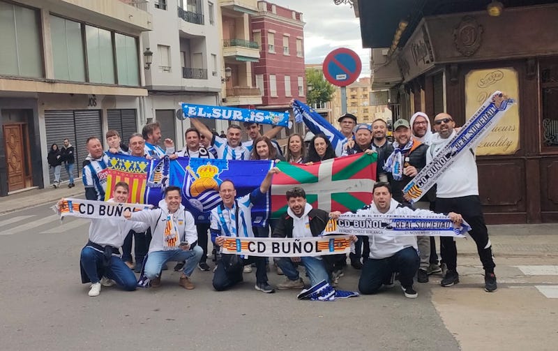 Reala non, Musti Taldea han. Urretxu eta Zumarragako Realaren lagun taldeak ez du inoiz kale egiten. Talde handienen aurkako partidetara joaten dira, baina baita gainontzeko guztietara ere. Gaur, 18:30ean, Realak Kopako lehen kanporaketa jokatuko du Preferente mailako Buñol taldearen aurka. Requenan jokatuko dute, Buñol taldearen zelaiak ez dituelako Federazioak eskatzen dituen baldintzak betetzen. 4.000 sarrera inguru jarri dira salgai eta ez da erraza izan bat lortzea, baina Musti Taldeko Iñaki Ruiz de Egilaz eta Antonia Mateos senar-emazteek bi sarrera lortu dituzte eta Requenan dira dagoeneko. Sarrerak Estrella del Norte Txuri-Urdin Castelloko Realaren lagun taldeko presidenteak eskuratu dizkie. Argazkietan Castelloko eta Valentziako realzaleekin eta Buñol taldeko zaleekin ageri dira.