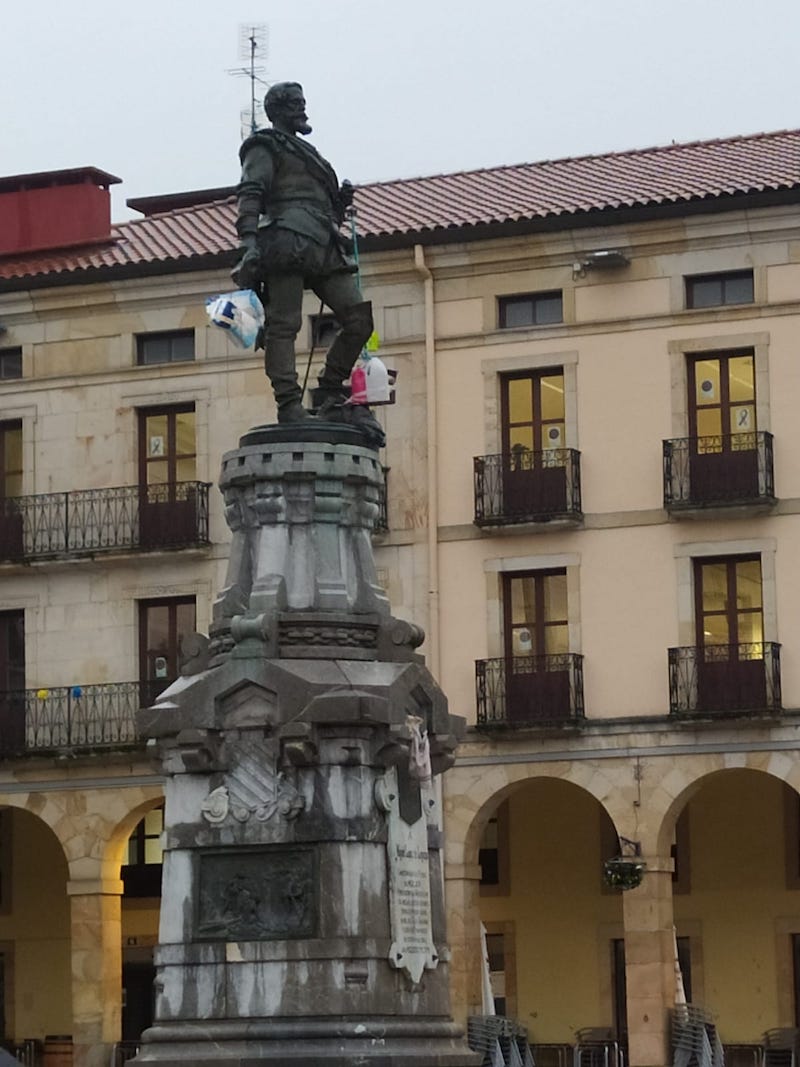 Noizean behin Miguel Lopez de Legazpiren estatua mozorrotuta ageri da. Estatuaren inguruko hausnarketa bultzatu nahi duen herritar baten ekimena da. Estatua dorretxera eramatea gustatuko litzaioke.
