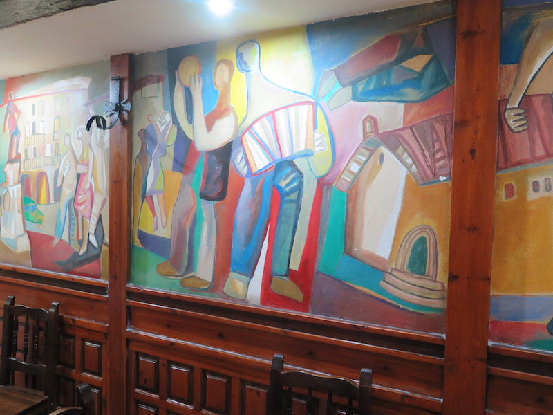 Baina, nolatan egin zuen mural bat Zumarragako Ezkiotarra jatetxean? Ezkiotarra jatetxea Patxi Idiakezek eta Dominica Aranburuk ireki zuten Urretxuko Iparragirre kalean. Ondoren, Urretxuko Baroikua etxera joan ziren (egun Laboral Kutxa dagoen tokira). Haiek utzi zutenean, beraien iloba Miguel Aranburuk eta bazkide batek hartu zuten. 1978an Miguel Aranburuk eta bere emazteak (Consuelo Nuñez) Ezkiotarra jatetxea Zumarragako plazara eraman zuten. 1964tik Zumarragako Berri tabernako nagusiak ere baziren.