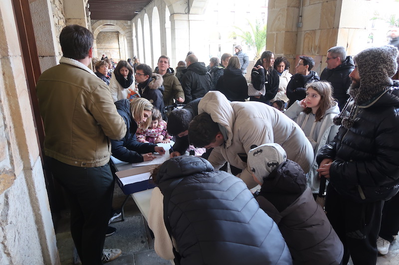 Izen-ematearen ondoren, TVEk Zumarragari dagokion aurkezpen bideorako irudiak grabatu zituen plazan. Herritarrei puxika urdinak eta horiak eman zizkieten (telebista saioko koloreak, baina baita Zumarragakoak ere) eta bertan bildutako zumarragarrek globoak astindu eta buila egin zuten.